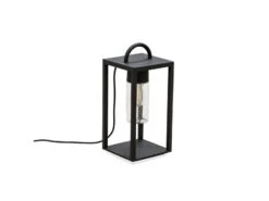 MeineWunschleuchte Kleine LED Tischleuchte Schwarz Aus Stahl Mit Klarglas, Höhe 33cm