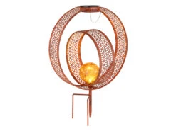 Globo LED Solarleuchte Mit Dekorstanzungen In Rostoptik & Crackle Glaskugel, Höhe 42cm