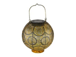 Globo Solarlaterne Hängend Oder Stehend Mit Dekorstanzungen, Metall Gold Antik Ø18,5cm
