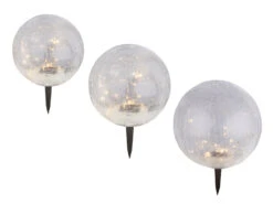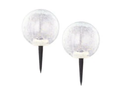 MeineWunschleuchte LED Solarkugeln 2er SET – Glas Leuchtkugeln Ø 15cm Mit Erdspieß, Bruchoptik