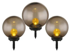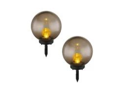 MeineWunschleuchte LED Solarkugeln 2er SET – Kugeln Rauchfarbig Ø 20cm Mit Erdspieß, Glas