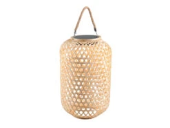 MeineWunschleuchte LED Solarlaterne AURE Hängend Aus Bambus Korbgeflecht Mit Sisalseil, Höhe 56cm