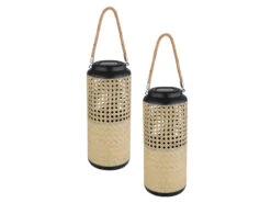 MeineWunschleuchte LED Solarlaternen 2er SET, Metall Rattanoptik, Hängend Oder Stehend, Höhe 45cm