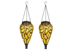 MeineWunschleuchte LED Solarlaternen Hängeleuchten 2er Set, Lampenschirm Amber, Höhe 50cm