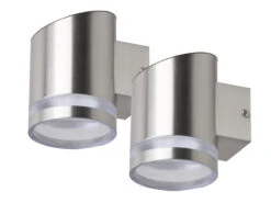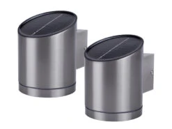 MeineWunschleuchte 2er-Set Solar Außenwandleuchten Edelstahl, Ø Ca. 9 Cm, Dämmerungssensor