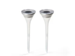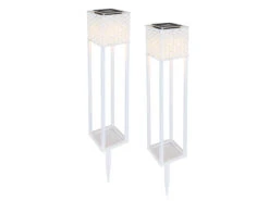 MeineWunschleuchte LED Rattan Solarleuchten 2er Set Weiß – Außenstehlampen Mit Erdspieß Höhe 62cm