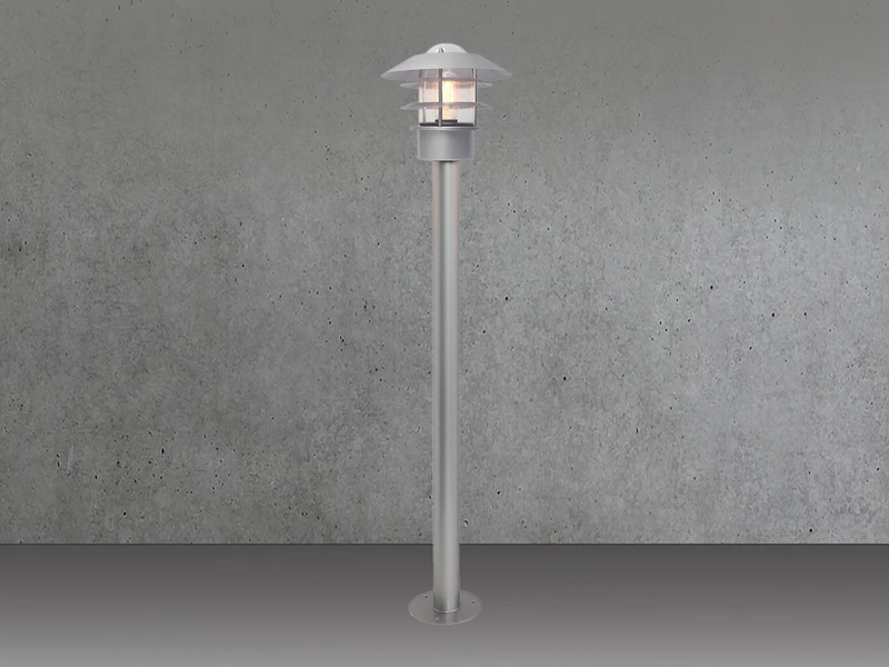 Gefertigt ist die stehende Außenlaterne aus Edelstahl 304 in Schwarz, welches zusätzlich pulverbeschichtet wurde, um der Leuchte zusätzliche Haltbarkeit zu verleihen. Somit ist sie robust genug um rauen Umgebungsbedingungen standzuhalten, und eignet sich daher hervorragend für den Einsatz in Küstengebieten. Der Lampenschirm besteht aus klarem Glas.