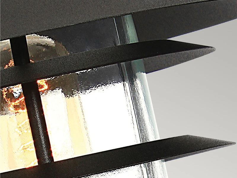 Gefertigt ist die stehende Außenlaterne aus Edelstahl 304 in Schwarz, welches zusätzlich pulverbeschichtet wurde, um der Leuchte zusätzliche Haltbarkeit zu verleihen. Somit ist sie robust genug um rauen Umgebungsbedingungen standzuhalten, und eignet sich daher hervorragend für den Einsatz in Küstengebieten. Der Lampenschirm besteht aus klarem Glas.