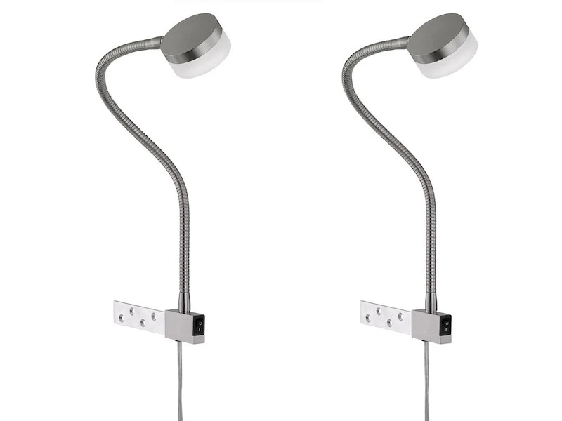 Besonders pfiffig ist eine integrierte Montageplatte, mit der sich die LED Leuchten an Möbeln oder am Bett befestigen lassen (rechts/links). Somit sind die beiden Leuchten besonders vielseitig einsetzbar als Bettleuchten und Möbellampen.