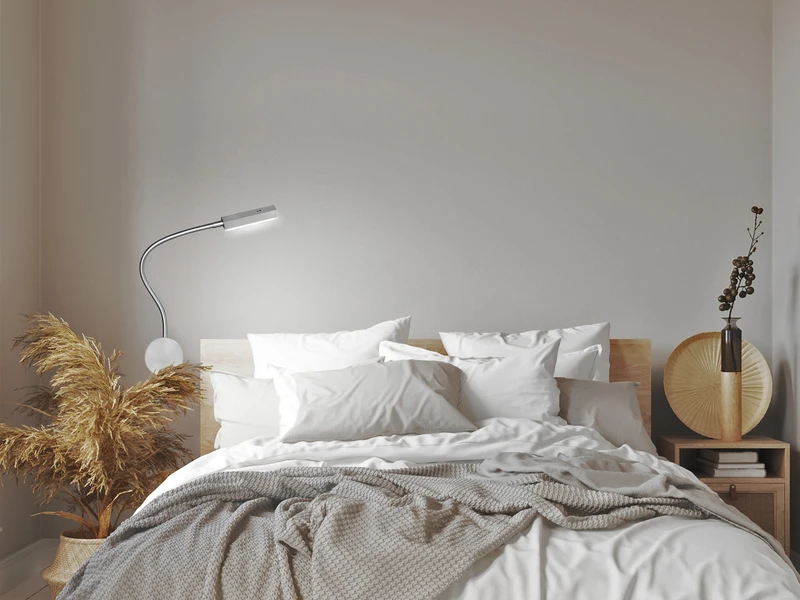 Per Gestensteuerung können Sie die Leselampen bequem bedienen: Eine Handbewegung über dem Leuchtenkopf reicht aus, um die Leuchten ein- und auszuschalten oder um sie stufenlos zu dimmen.