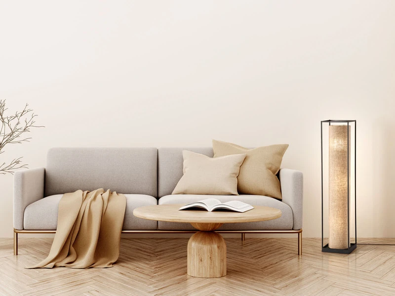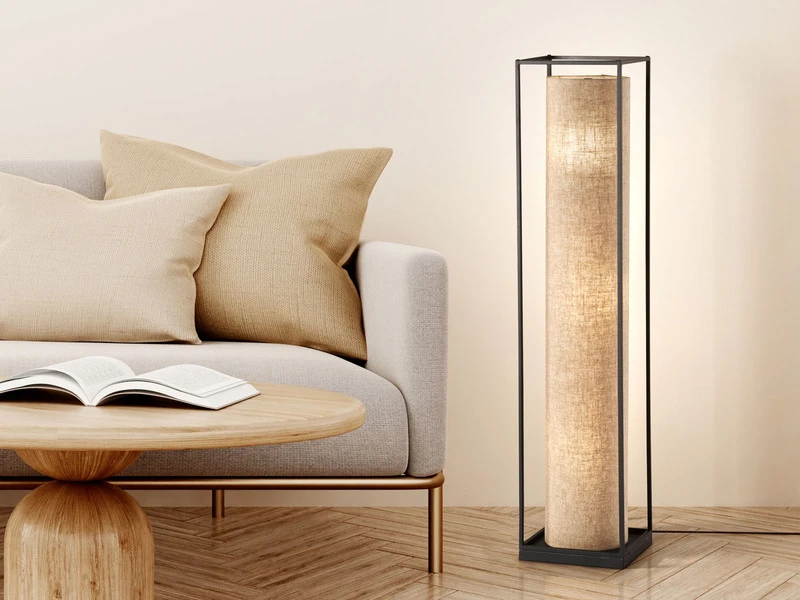 Der Lampenschirm hat einen Durchmesser von 19cm und ist aus sandfarbenem Leinenstoff gefertigt. Der schwarze Metallrahmen ist 25x25cm groß. Das zeitgemäße Design der Stehleuchte verleiht ihr ihren unverwechselbaren Charakter und sorgt für schöne Lichtmomente.
