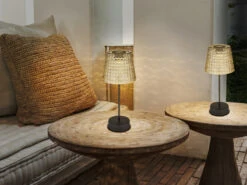 Diese 29cm hohen Outdoor Tischleuchten bestehen aus Kunststoff in Schwarz und haben einen rauchfarbigen Kristall Lampenschirm, in dessen Inneren sich ein fest verbautes LED mit einer Leistung von je 0,06 Watt und 3.000 Kelvin in warmweiß befindet, das für schöne Lichteffekte sorgt. Der inkludierte AA NiMh Akku lädt sich bei Sonnenlicht auf und ist austauschbar.