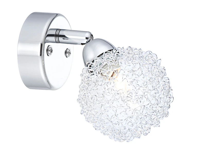 Mit ihrem filigranen Design sorgt sie für ein stilvolles Flair in Ihrem Zuhause und verwöhnt Sie ganz nebenbei mit einem stimmungsvollen Licht. Das geschmackvolle Design der Wandleuchte wird durch den Chrom glänzenden Korpus und die kugelförmige, schwenkbare Brennstelle aus einem Geflecht von Draht gekonnt unterstrichen.