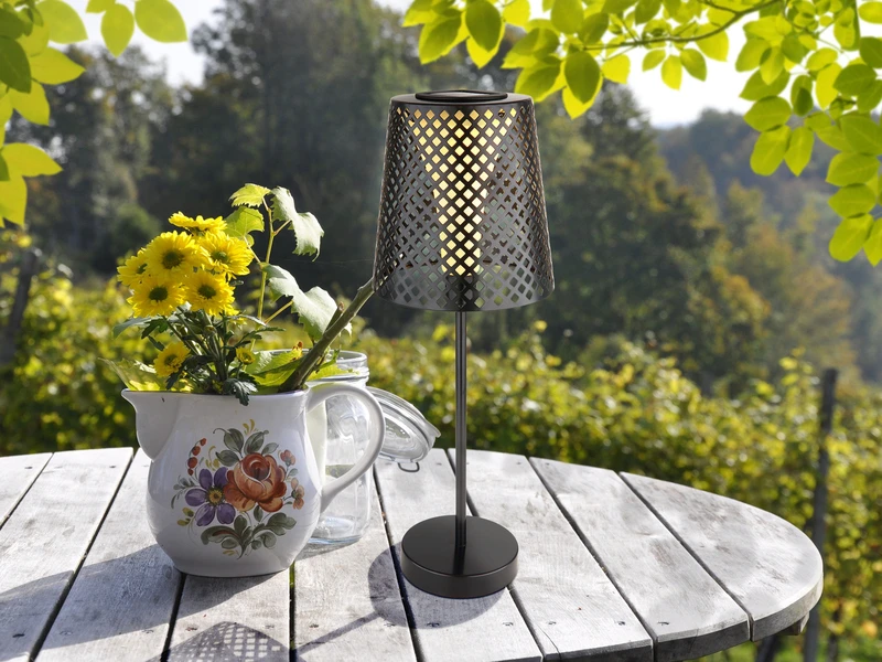 Die Tischlampe wird von einem effizienten Solarpanel betrieben, das während des Tages Sonnenenergie sammelt und sie in Strom umwandelt. Durch den integrierten Dämmerungssensor wird die Gartenleuchte automatisch eingeschaltet und spendet bis zu sechs Stunden lang ein warmweißes Licht. Zudem verfügt die Solarlampe über einen Ein/Aus-Schalter.