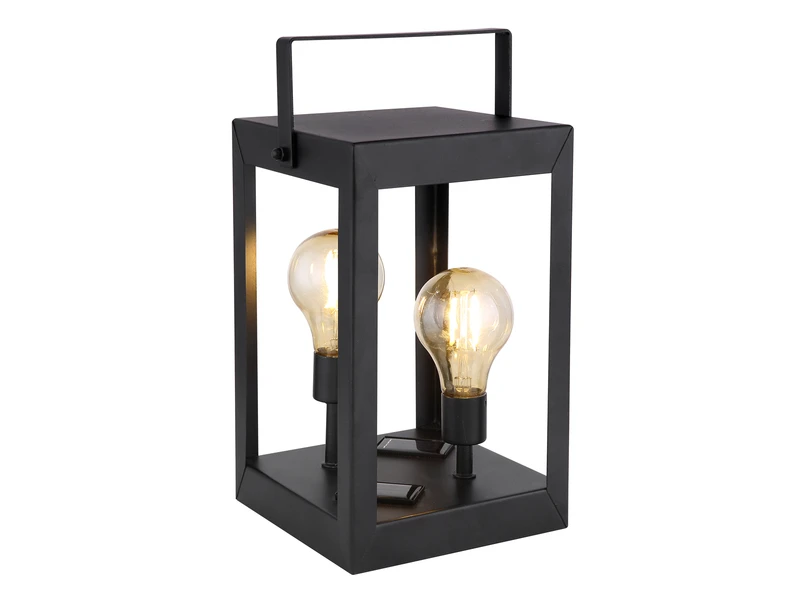 Diese 28cm hohe Außentischleuchte hat einen schwarzen Korpus aus Metall, in dessen Inneren sich zwei Filament LED im Edison Look mit einer Leistung von 0,06 Watt und 3.000 Kelvin in warmweiß befinden, welche für schöne Lichteffekte in Ihrem Outdoor Bereich sorgen. Der inkludierte, austauschbare AA NiMh Akku lädt sich bei Sonnenlicht auf und kann bei Dämmerung bis zu 8 Stunden leuchten.