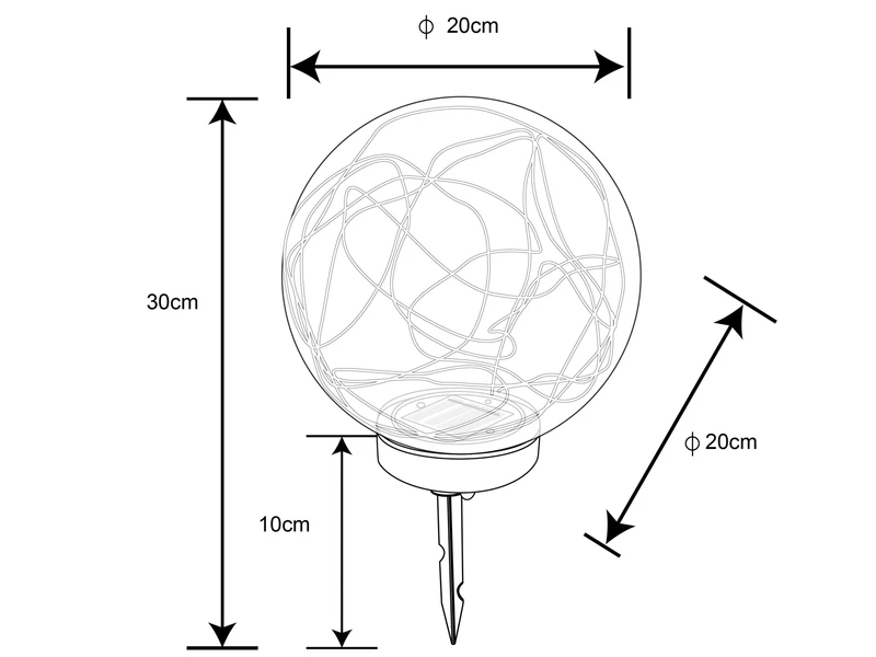 Die Leuchtkugel verfügt über ein Solarpanel das sich praktischerweise verdeckt im Boden der Leuchte befindet und so optisch nicht störend wirkt. Der eingebaute Akku der Kugellampe sorgt nach voller Sonneneinstrahlung für eine Leuchtdauer von bis zu acht Stunden und versorgt zuverlässig das fest verbaute LED Modul mit einer Leistung von 30 x 0,06 Watt. Mit dieser zeitlosen Gartenkugel setzen sie tolle Lichtakzente ganz unabhängig vom Stromnetz im Garten und auf dem Grundstück.