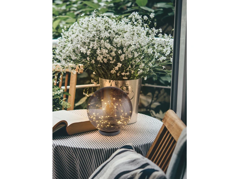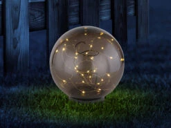 Diese ausgefallene Solarkugel sorgt mit den vielen kleinen Lämpchen und dem rauchfarbigen Kugelschirm für faszinierende Lichtstpiele in Ihrem Außenbereich.