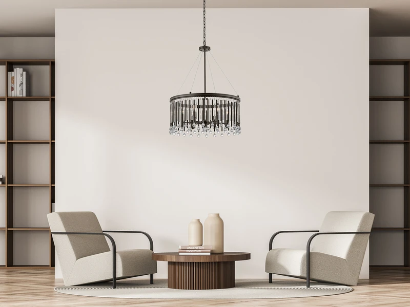 Der Lüster hat einen Durchmesser von 61,6cm und kann in der Höhe von 94cm bis 269cm eingestellt werden und ist somit perfekt geeignet für Räume mit hohen Decken und größere Einsatzbereiche.