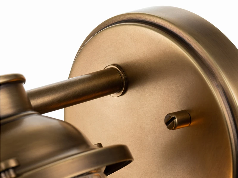 Langweilige Badbeleuchtung war gestern! Diese ausgefallene Innenleuchte im Industrial Style besticht durch ihr ausgefallenes Design und ihre hochwertige Verarbeitung. Der Korpus der Leuchte besteht aus Messing farbigem Stahl, der Lampenschirm aus strukturiertem Glas.