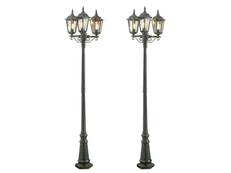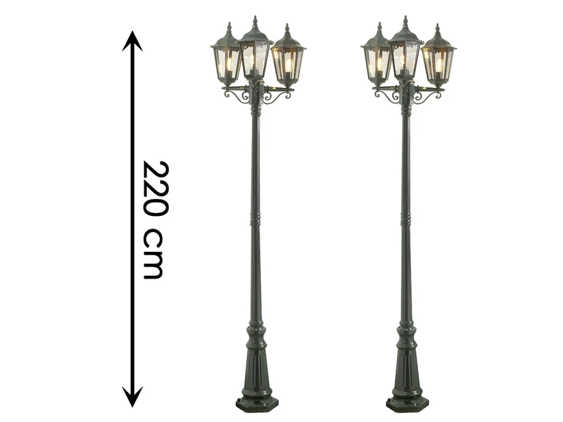 Mit einer Höhe von ca. 220 cm sind diese Gartenlaterne die optimale Beleuchtung für Ihre Einfahrt, an Treppen, den Garten oder für die Terrasse. Durch die drei Laternen bieteen sie eine tolle Ausleuchtung.
