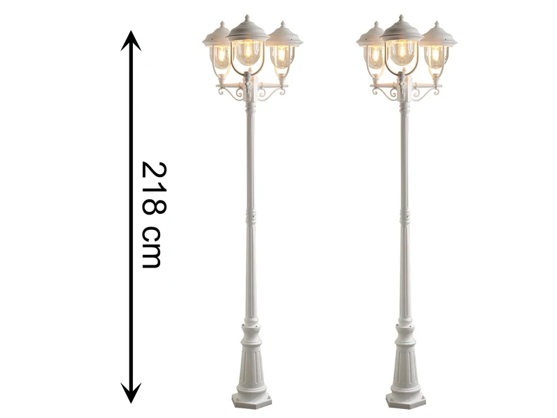 Mit einer Gesamthöhe von ca. 218 cm und einem Durchmesser von 60 cm sind diese Standleuchten ideal für die Einfahrt, die Terrasse an Treppen oder den Garten und bieten eine optimale Ausleuchtung.