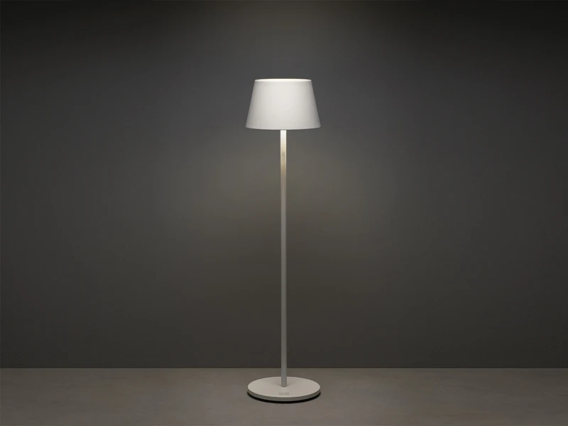 Mit ihrem praktischen USB-Anschluss und dem wiederaufladbaren Akku ist diese Stehleuchte aus weißem Aluminium äußerst flexibel und unabhängig von Stromquellen. Laden Sie sie einfach über das mitgelieferte Kabel auf und genießen Sie stundenlanges Licht ohne störende Kabel. Sie brauchen keine Steckdosen in der Nähe und haben die Freiheit, Ihren Lieblingsplatz im Freien zu beleuchten, wie Sie es möchten.
