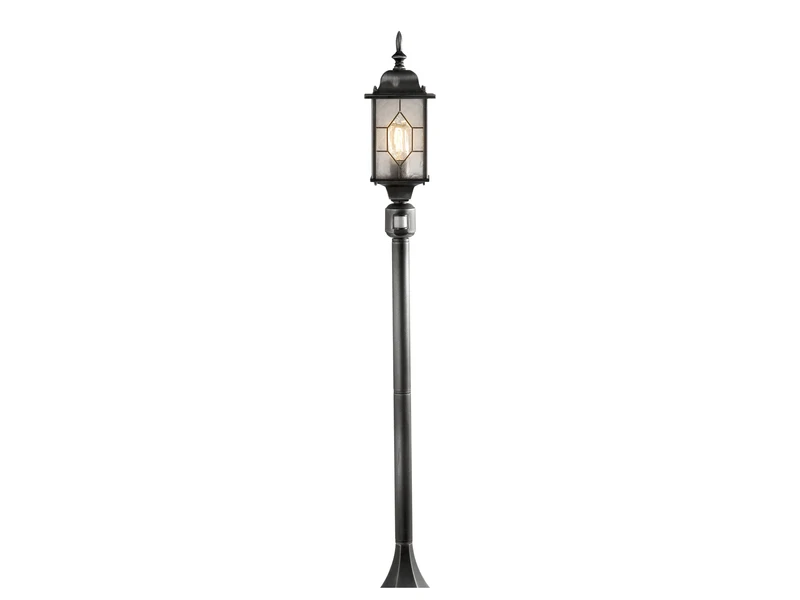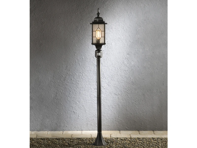 Die Außenleuchte im Landhausstil hat eine Höhe von 131cm und bietet als Terrassenbeleuchtung, Gartenleuchte oder im Eingangsbereich eine optimale Ausleuchtung. Breite und Tiefe betragen jeweils 16cm.