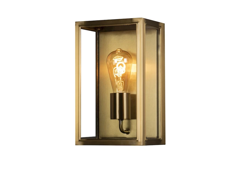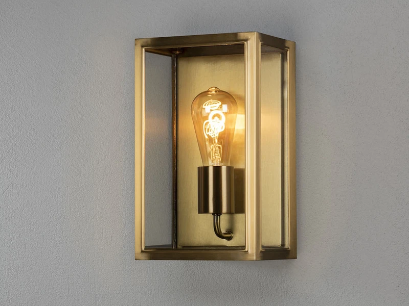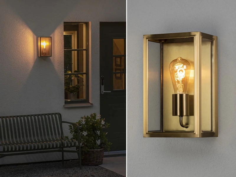 Gefertigt aus Messing und aus Klarglas überzeugt die Außenleuchte im modernen Landhausstil durch ihre hochwertige Verarbeitung und ihrem zeitlosen Erscheinungsbild in Laternenoptik.
