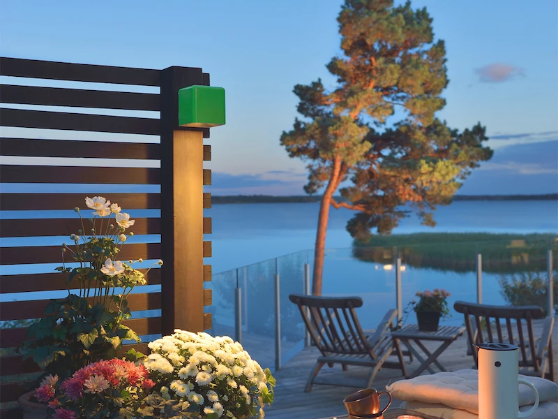 Die LED Außenleuchte ist aus lackiertem Kunststoff in grün gefertigt.