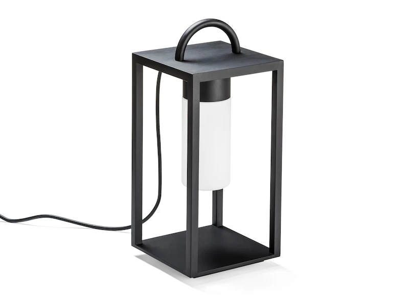 Gefertigt ist die LED Gartenleuchte aus schwarz lackiertem Aluminium mit einem opalen Glas.