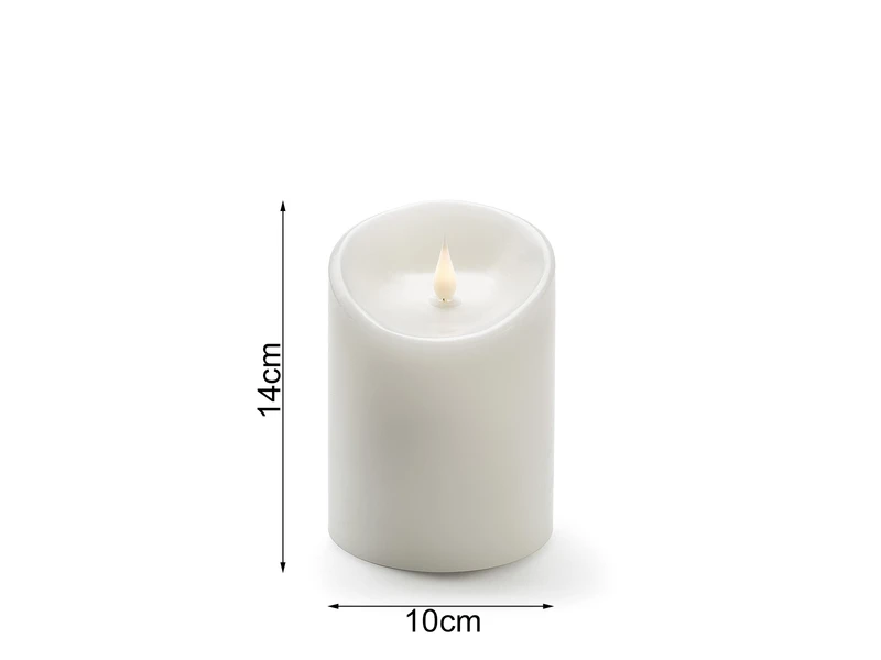 Besonders praktisch ist der integrierte Timer, den Sie wahlweise auf 4 oder 8 Stunden stellen können. So brauchen Sie nicht immer daran denken, die Kerzen auszuschalten. Diese weiße LED Kerze hat einen Durchmesser von 10 cm und eine Höhe von 14 cm.