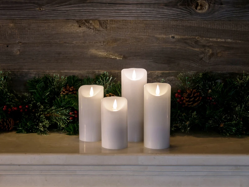 Ganz egal für welche Zwecke Sie LED Kerzen mit beweglicher Flamme suchen, ob für Laternen in Hauseingang oder Diele, als Stimmungslicht auf dem Esszimmertisch oder als Tischbeleuchtung im Wohnzimmer. Diese Kerze können Sie ganz nach Ihren Ideen und Wünschen dekorieren und aufstellen. Auch in der Weihnachtszeit können die Echtwachskerzen in Adventsschale oder Kranz zum Einsatz kommen.