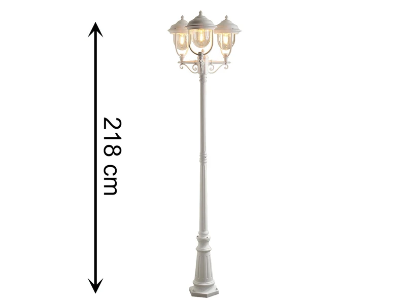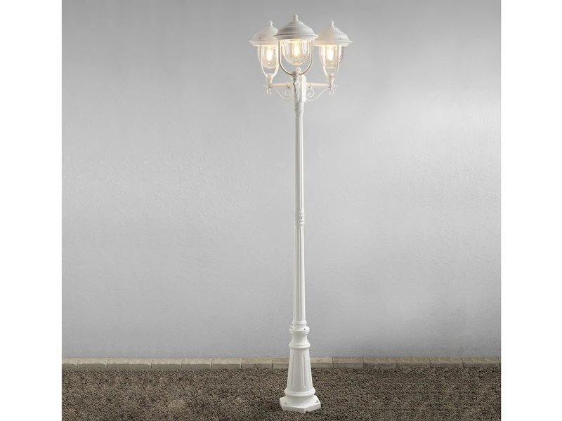 Die Außenleuchte im Landhausstil hat eine Höhe von 218cm und bietet als Gartenbeleuchtung, Terrassenbeleuchtung, Wegebeleuchtung oder Straßenbeleuchtung eine optimale Ausleuchtung. Sie ist 60cm breit und 60cm tief.