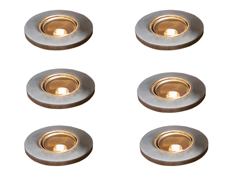 Die Mini Bodenspots im 6er SET sorgen für eine stimmungsvolle Atmosphäre in Ihren Außenanlagen. Durch die Lichtbündelung nach oben können Sie Gebäude oder Objekte in Ihrem Garten gezielt anstrahlen und so perfekt in Szene setzen. Mit einer Schutzart von IP44 können die Einbauspots fast überall im Außenbereich und Innenraum platziert werden.