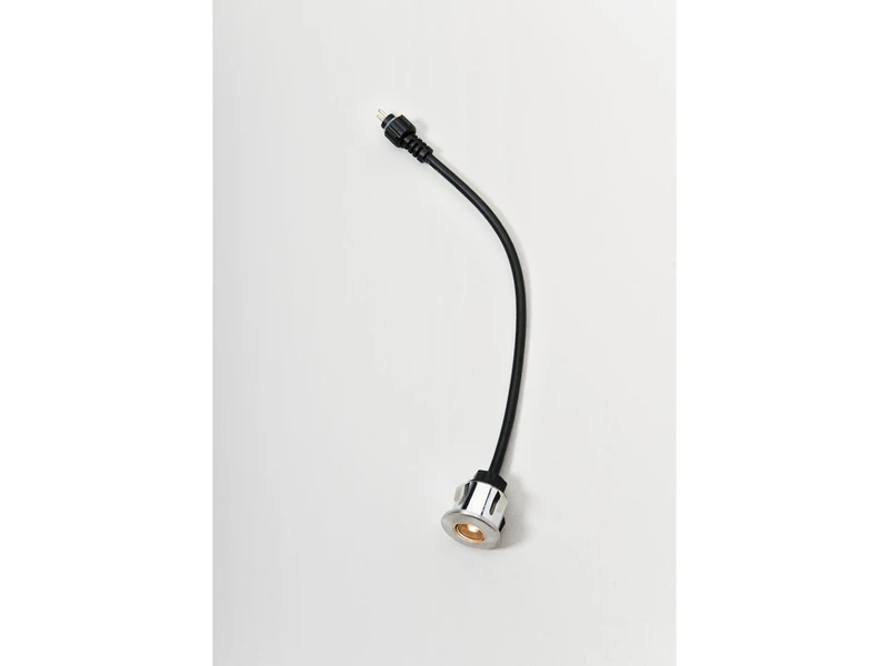 Der Minispot hat einen Durchmesser von 3,5cm sowie eine Tiefe von 6,5cm. Als Einbaumaß benötigen Sie einen Ausschnitt von 3cm und eine Einbautiefe von 8,2cm für den flachen Strahler. Die Spot-Abstände liegen bei 2 Metern, das Set wird geliefert mit 10 Metern Anschlusskabel und Transformator.