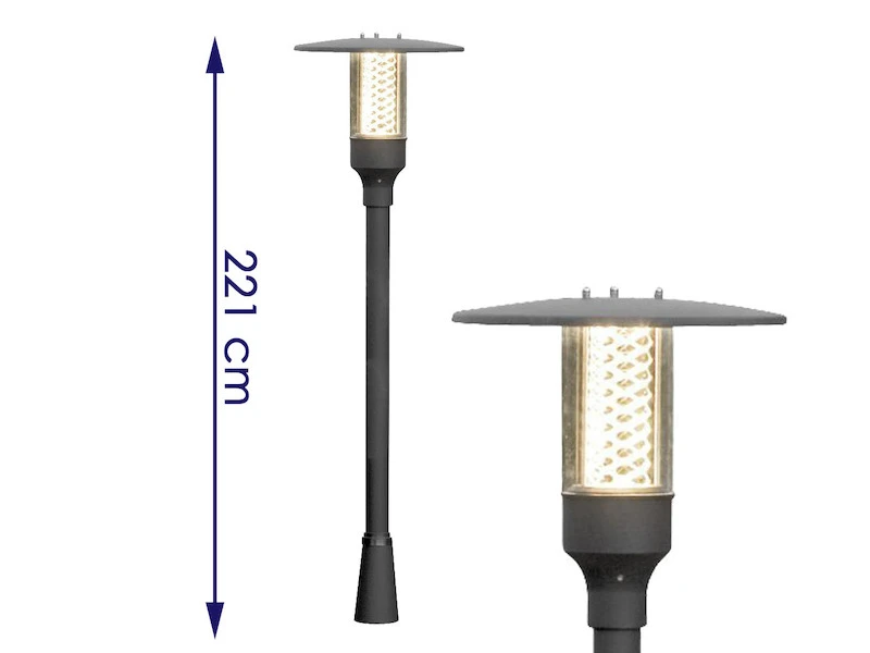 Mit einer Höhe von ca. 221 cm und Spritzwasserschutz IP44 ist diese Mastleuchte ideal für Ihre Einfahrt, den Garten oder die Terrasse.