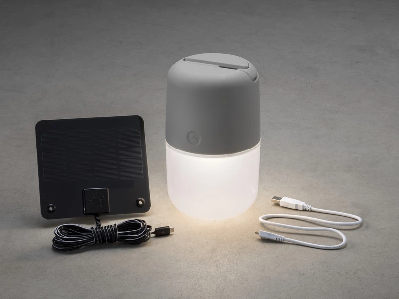 Allein im Hellen ist die Solarlampe mit ihrem grauem Kunststoffgehäuse und dem opalen Acrylglas schon ein toller Blickfang. Da die Leuchte ohne Kabel auskommt, können Sie diese Gartenlampe als Tischleuchte auf der Terrasse und im Garten nutzen oder sie aufhängen um besondere Lichtpunkte zu schaffen. Als besonderes Highlight lässt sich die Solarlampe in drei Stufen dimmen. So können Sie zwischen einer guten Ausleuchtung z.B. beim Essen, bis hin zu einem dezenten Orientierungslicht wählen.