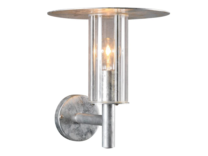 Durch die Kombination aus galvanisiertem Stahl und Polycarbonat Glas ist diese Wandleuchte bruchsicher und schlagfest.