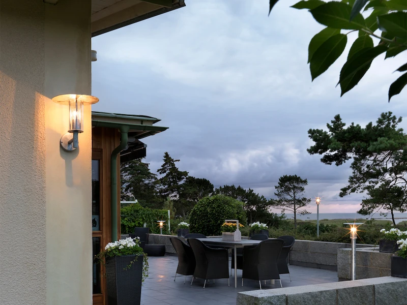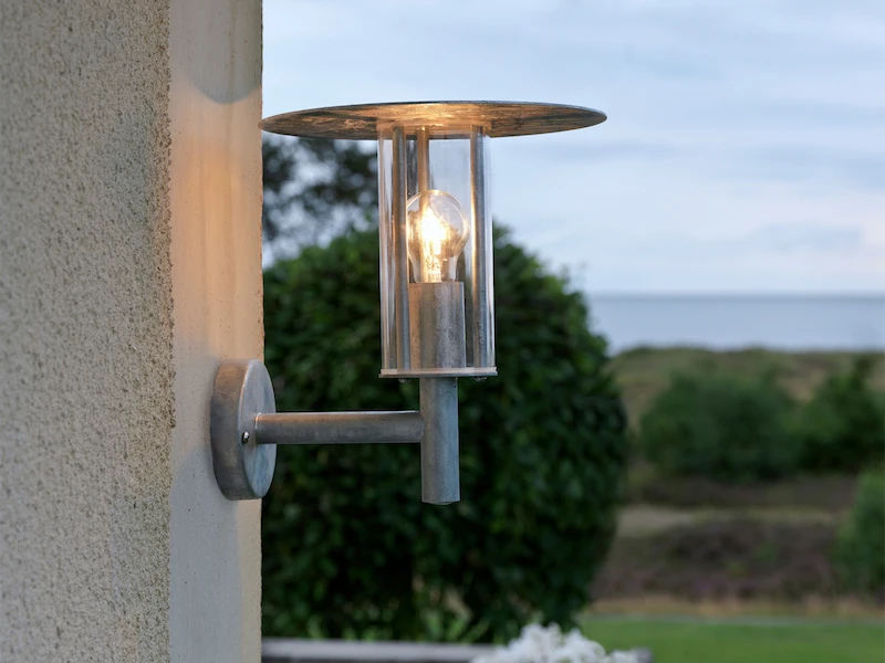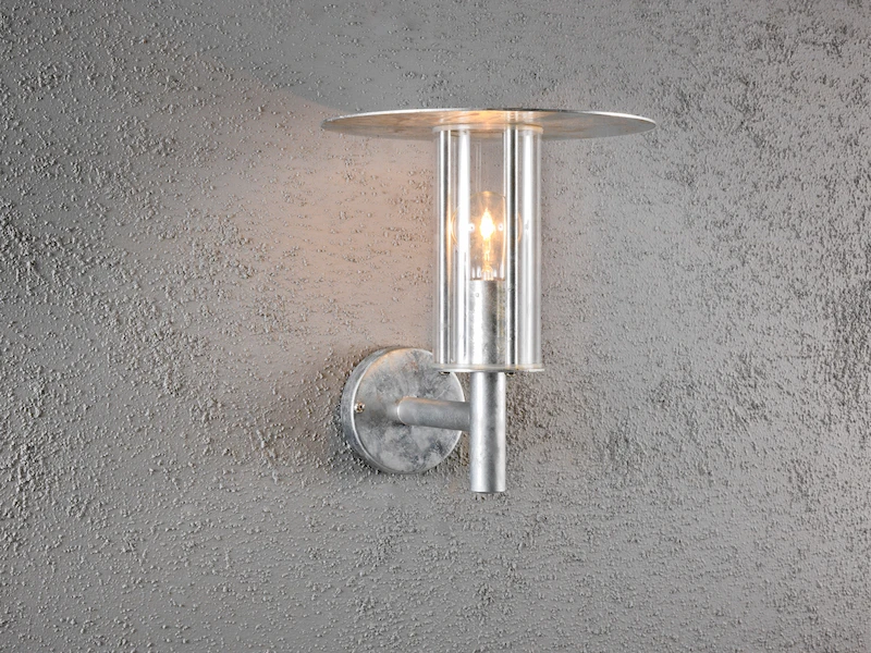 Der große, schmale Schirm reflektiert den Lichtschein nach unten und der Seite, sodass Sie an Ihrer Hauswand eine angenehme Ausleuchtung erhalten.