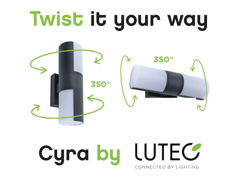 Die vielseitige Außenleuchte CYRA kann viel mehr als nur hübsch aussehen: Die zwei Lichtköpfe dieser Wandlampe können unabhängig von einander um bis zu 350° gedreht werden, was zu einem stimmungsvollem und einzigartigem Lichteffekt führt. Für noch mehr Individualität in Ihrem Außenbereich ist dieser Up and Down Wandstrahler für die vertikale und horizontale Montage geeignet. Mit ihrem vielfälltigem Design und zahlreichen Einsetzungmöglichkeiten passt sich diese Außenlampe ideal Ihren Wünschen und Wänden an.