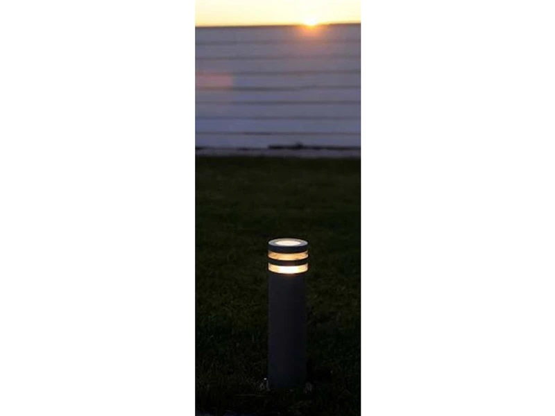 Die Pollerleuchte ist mit einer GU10 Fassung ausgestattet und wird inklusive eines LED Leuchtmittels mit 5 Watt, 400 Lumen & 3000 Kelvin in Warmweiß geliefert.