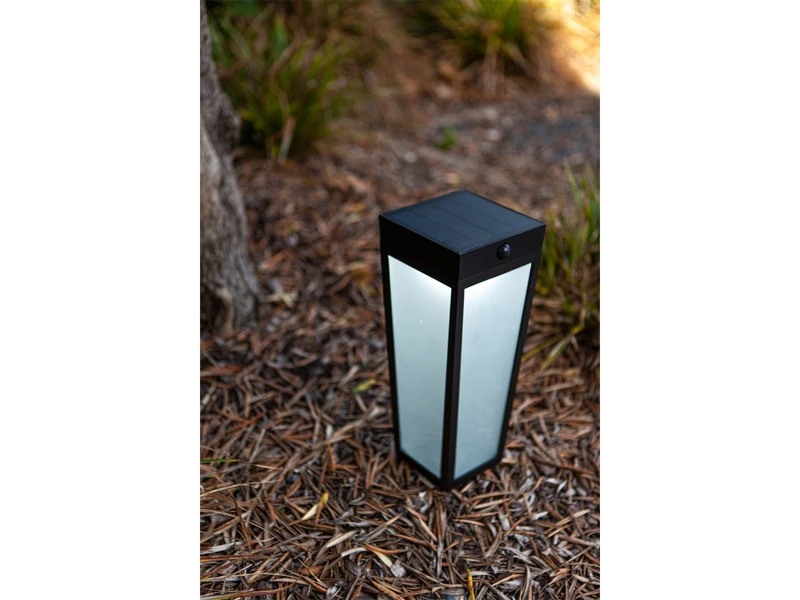 Dank des Solarpanels an der LED Außenleuchte, kann das Licht der Sonne eingefangen und in Strom umgewandelt werden. So kann Energie gespart werden und Sie haben die Möglichkeit die Außenbeleuchtung ganz ohne Stromanschluss zu platzieren, wo immer Sie gerne Licht hätten. Eine kubistische Wegeleuchte mit großer Wirkung, sie kann mit dem mitgelieferten Spieß bequem in den Boden gesteckt werden.