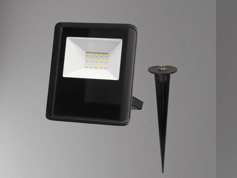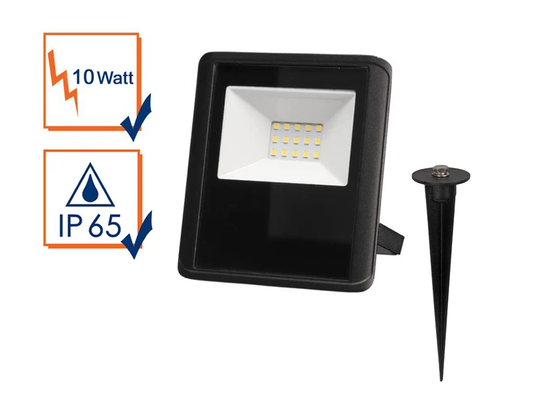 MeineWunschleuchte 10 Watt LED Strahler SET Montagehalterung & Erdspieß, Neutralweiß, IP65, 11x13cm