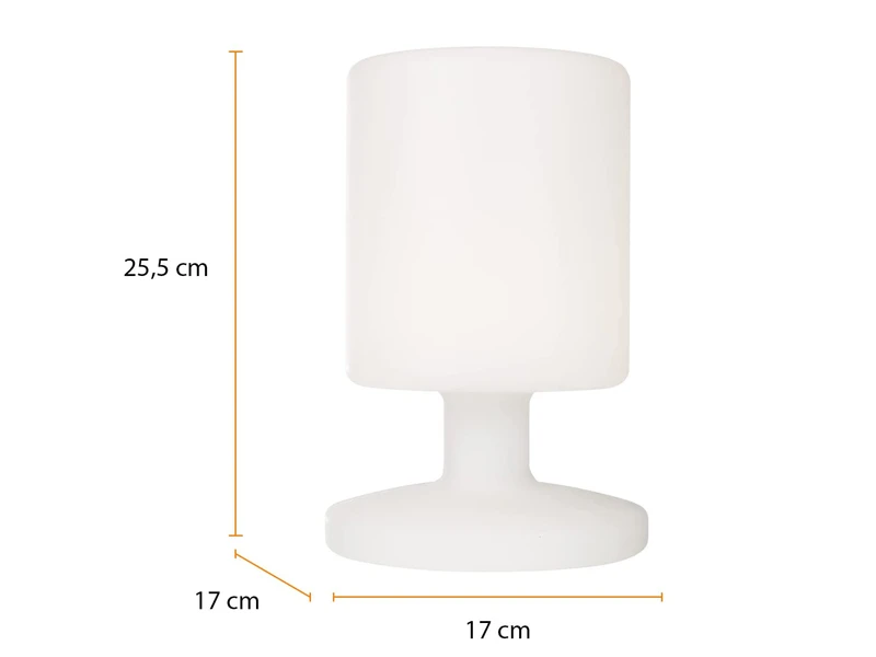 Schaffen Sie mit dieser wiederaufladbaren Tischlampe die Atmosphäre Ihrer Wahl: Sie strahlt warmweißes Licht für eine gemütliche Atmosphäre oder farbiges Licht für eine festliche Stimmung aus!