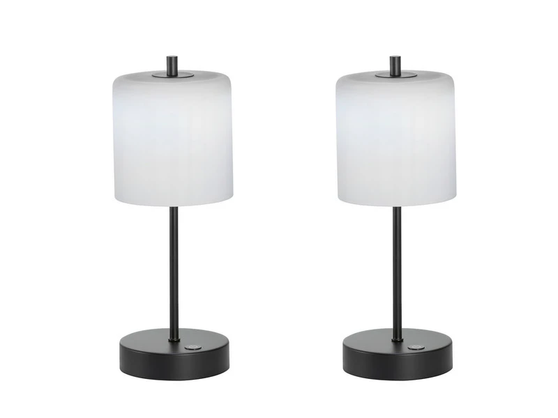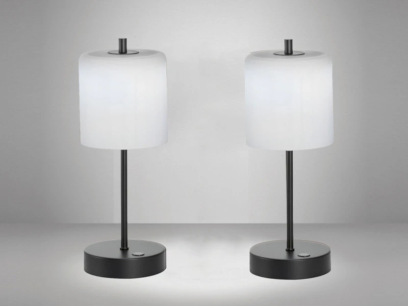 Mit ihrem schwarzen Leuchtenfuß und dem weißen Lampenschirm aus Opalglas sind die jeweils 34,5cm hohen Tischlampen auch optisch ein schöner Blickfang.
