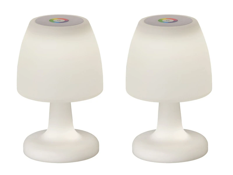 Die beiden Outdoor Tischleuchten sind akkubetrieben, so dass Sie sie überall unabhängig von einer Steckdose aufstellen können. Mit einer Leuchtdauer von jeweils etwa 4,5 Stunden erhellen sie zuverlässig die dunklen Abendstunden. Dank des integrierten USB Anschlusses und der mitgelieferten USB Kabel ist ein leichtes Aufladen gewährleistet.
