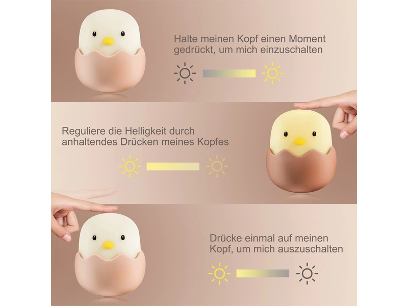 Das einzigartige Tumbler Design ermöglicht es dem Nachtlicht, sich bei leichten Berührungen zu bewegen, wie ein echtes Küken im Ei!