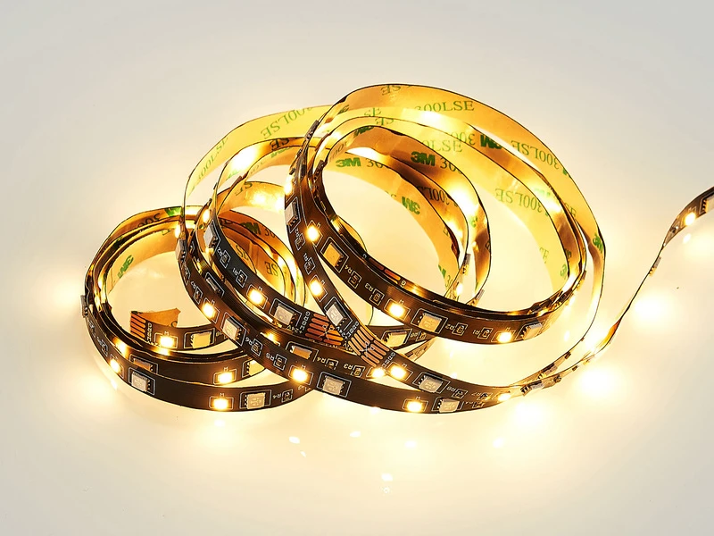 Die auf dem drei Meter langen Streifen verbauten LED lassen sich mit Hilfe der beigelieferten Fernbedienung in allen Regenbogenfarben schalten. Zusätzlich sind die Leuchten mit einem stufenlosen Dimmer ausgestattet und verfügen über eine Memory Funktion, womit die zuletzt gewählte Licht-Einstellung gespeichert wird, und beim erneuten Einschalten der Leuchten wieder erstrahlt.