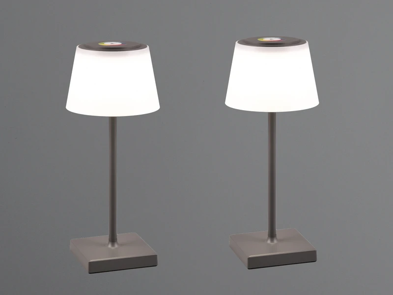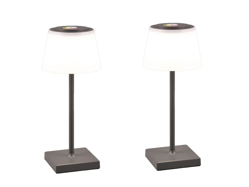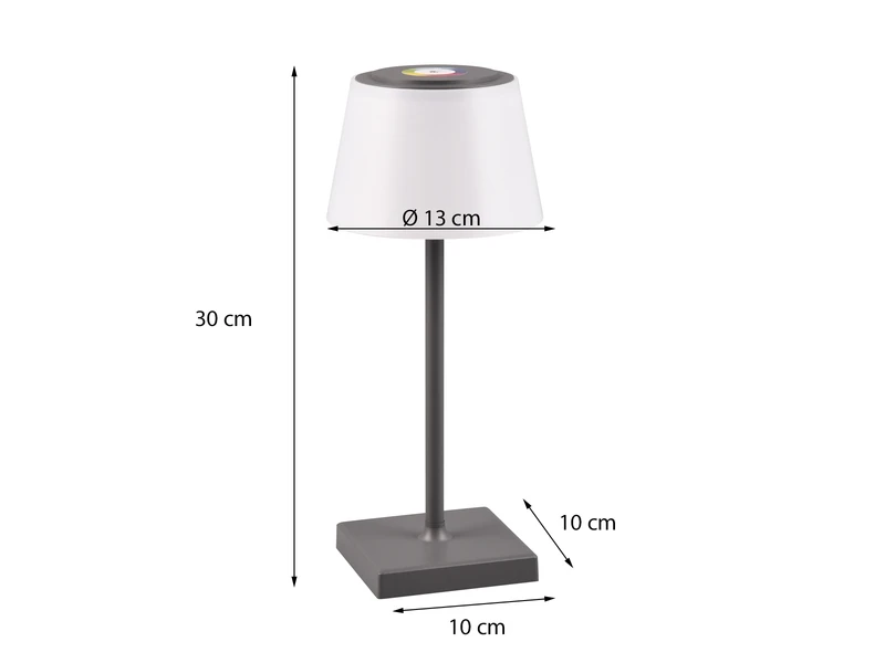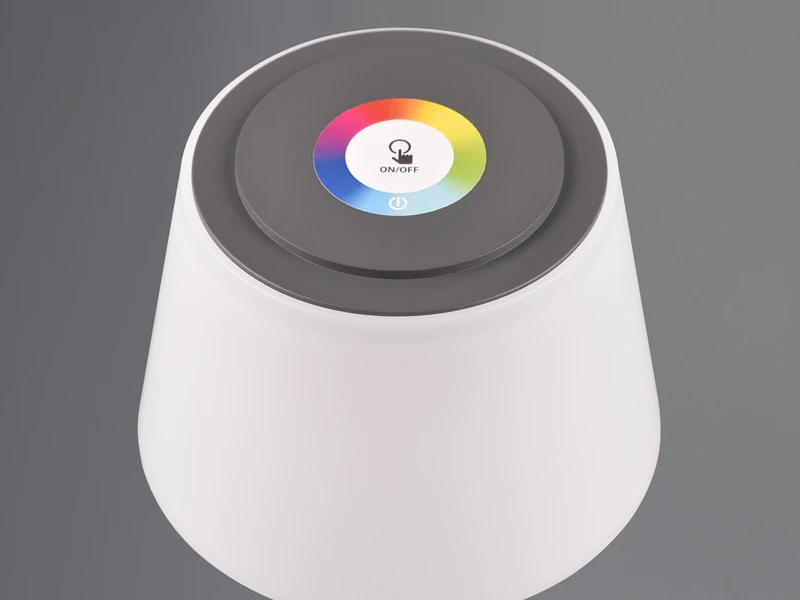 Dank Schutzart IP44 gegen Spritzwasser geschützt und damit perfekt für den Außenbereich geeignet. Das schlichte Design in Anthrazit & Weiß matt setzt dekorative Akzente mit Wohlfühlcharakter auf dem Gartentisch oder beim Picknick.