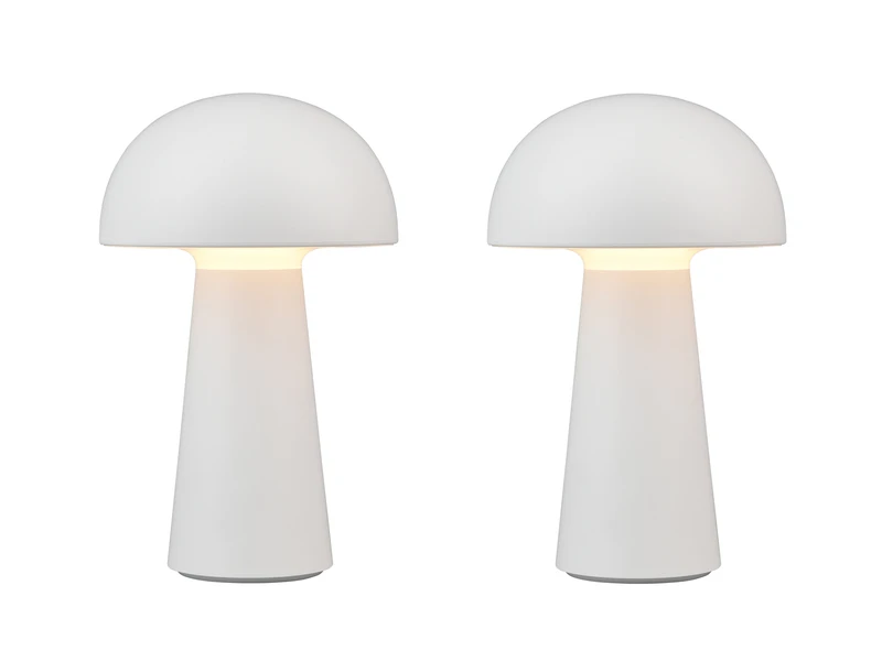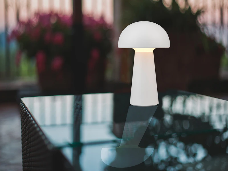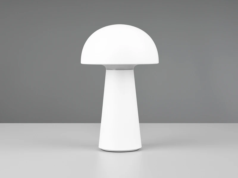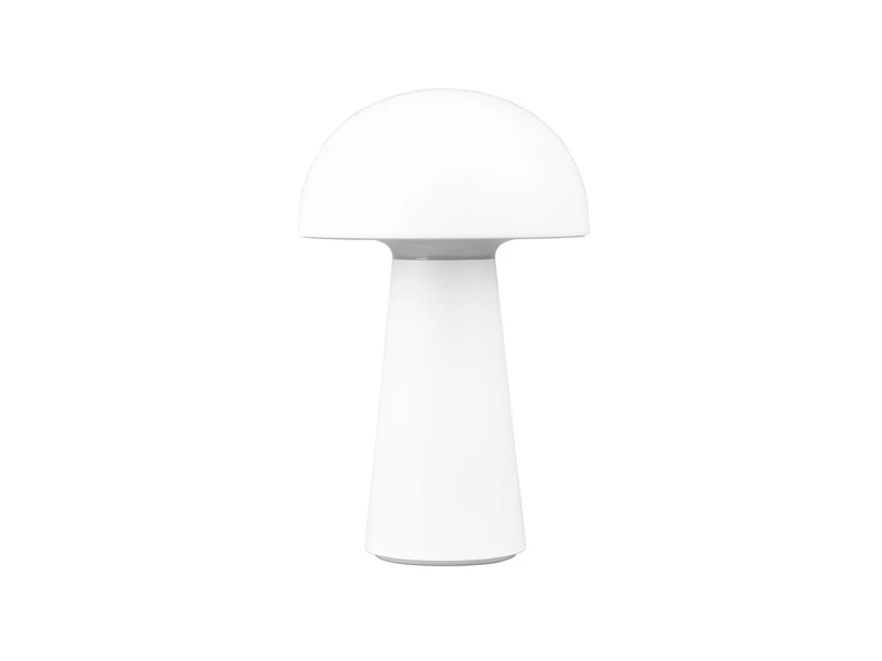 Durch die Klassifizierung IP44 ist die Leuchte vor Spritzwasser geschützt und damit auch für den Außenbereich geeignet. Durch das schlichte und reduzierte Design in Pilz Form, wird die weiße Tischleuchte zu einem unaufdringlichen Dekoelement das besonders anpassungsfähig ist.